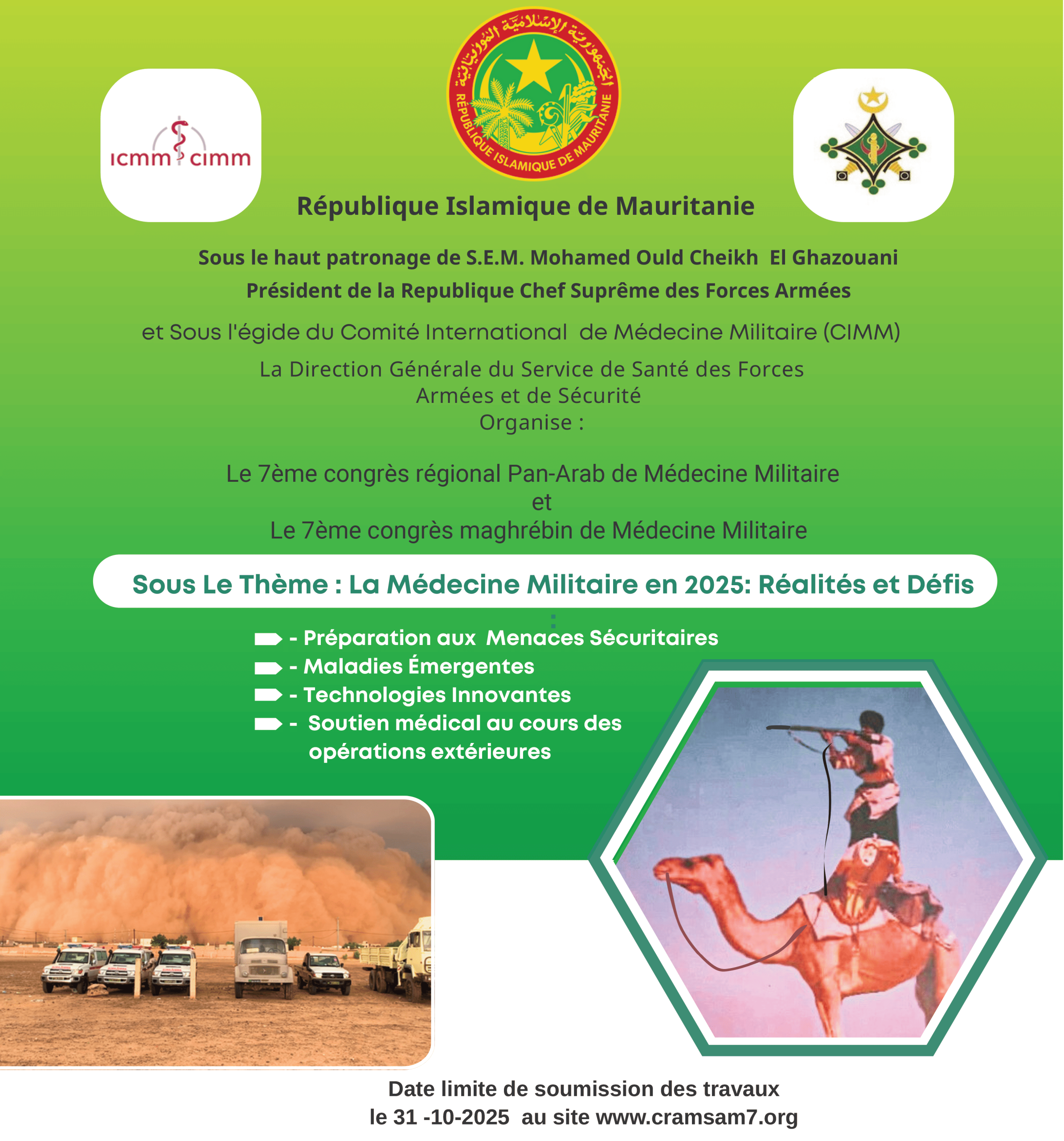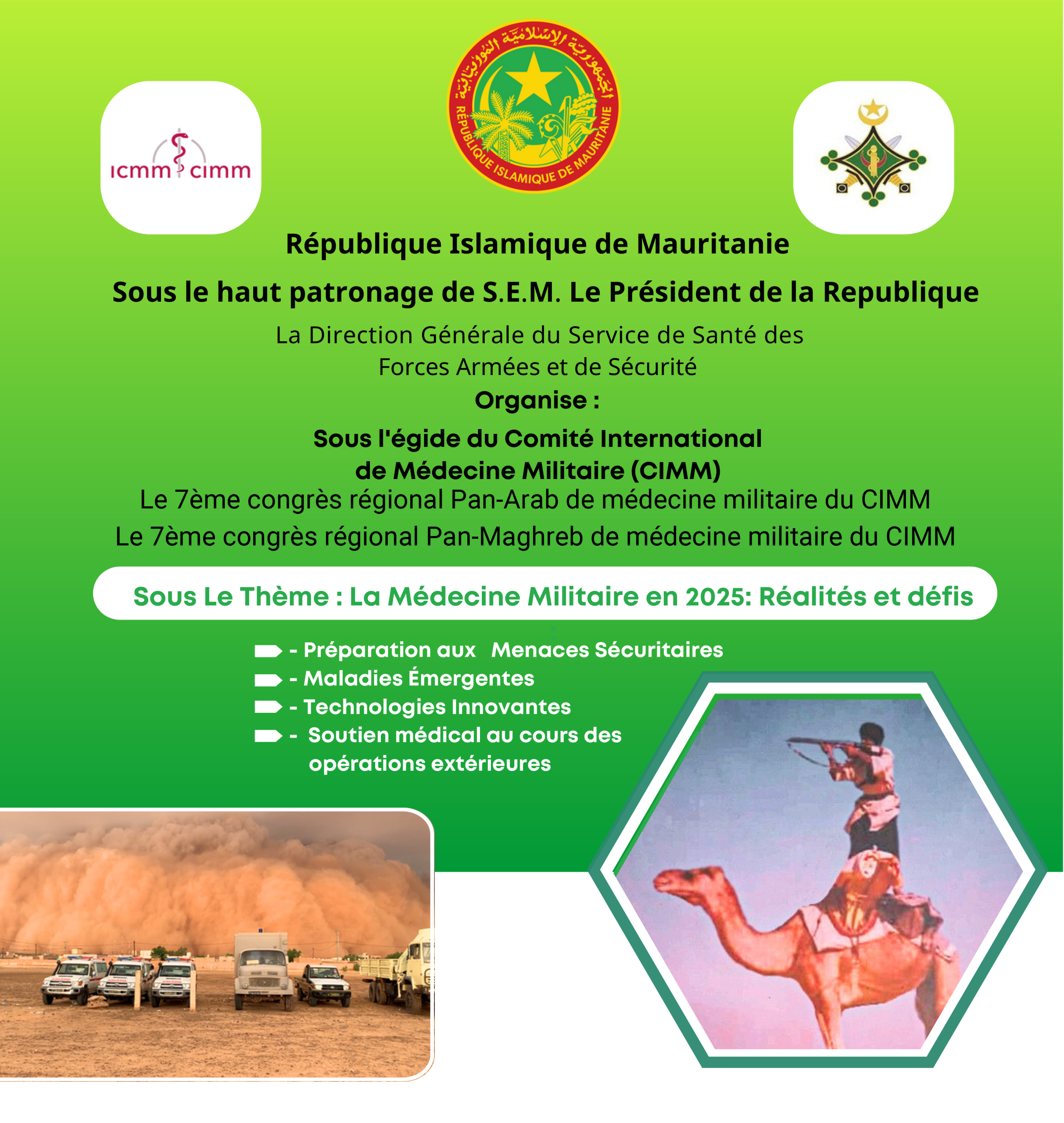 les 7èmes congrès Pan arabe et Maghrébin de médecine militaire du 1er au 04 décembre 2025 à Nouakchott.